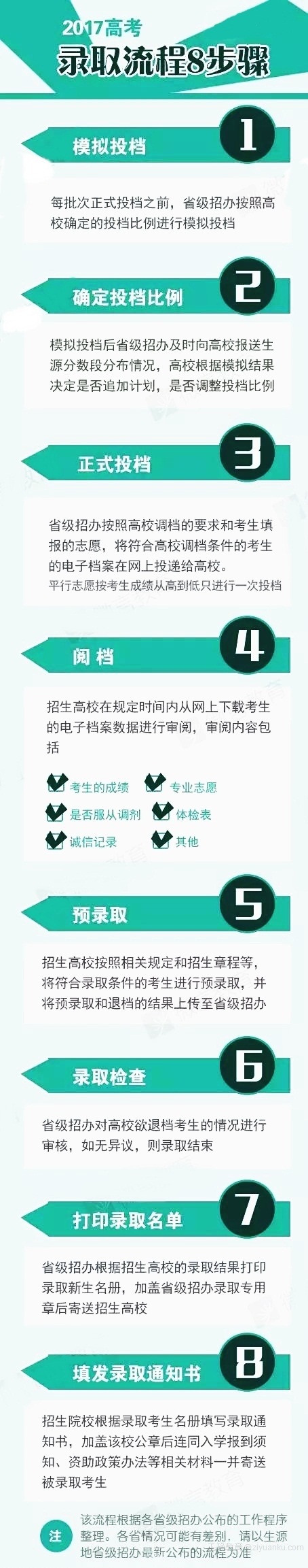 2017年高考填報志愿正在進行,志愿填報后即將進入錄取環(huán)節(jié)。錄取流程都有哪些?怎樣查詢錄取結果?錄取通知書何時能收到?中華資源庫小編整理了高考錄取的8個步驟和12個常見問題,考生和家長看過來。