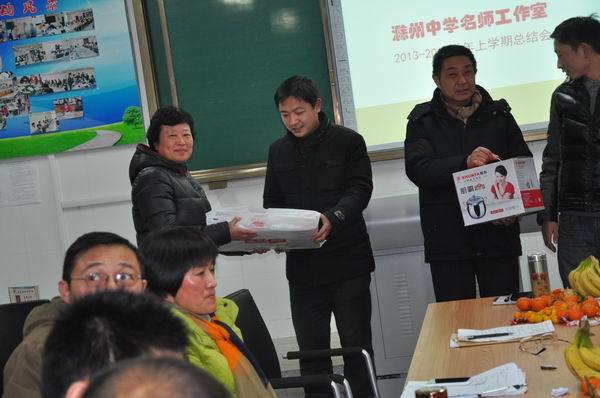 會(huì)議最后,劉校長、楊校長、胡主任為工作室獲獎(jiǎng)老師王軍、姜家余、黃維頒發(fā)了獎(jiǎng)品。
