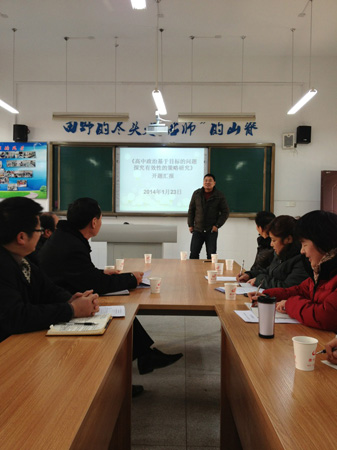 由滁州市教研室和我校政治教研組共同申報的2013年省級教育科學規(guī)劃課題《高中政治基于目標的問題探究有效性的策略研究》,經安徽省教育科學規(guī)劃領導小組的評審,獲準立項開展研究,按課題研究的相關要求,于2014年1月23日下午2:30在學校名師工作室舉行了開題儀式。市教育局教研室郭仕榮副主任、宋萬松老師、滁州二中教研室林桂平副主任、市教育局政治教研員張作真等領導和專家及課題組全體成員10余人參加了開題儀式。會議由滁州中學教研室主任胡忠國主持。