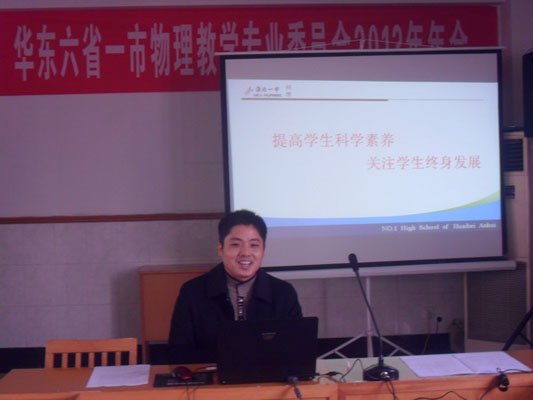 2013年12月13日~14日,“華東六省一市物理學會2013年年會”在江蘇省常州市前黃高級中學舉行,我校劉雨老師參加了此次會議并代表安徽省高中物理教學論壇上做了題為《提高學生科學素養(yǎng)關注學生全面發(fā)展》的發(fā)言,獲得了與會老師的好評。