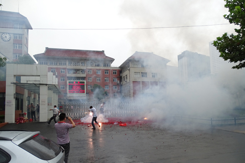 合肥九中明確規(guī)定不接受家長(zhǎng)的饋贈(zèng),不接受謝師宴,學(xué)生的成功就是對(duì)母校、恩師最好的回報(bào)。家長(zhǎng)燃放煙花爆竹雖有違規(guī)定,但也是其心情可以理解的。