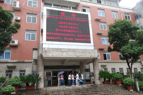6月24日,2014年高考分?jǐn)?shù)揭曉,合肥九中迎來(lái)了輝煌的時(shí)刻,高考參考人數(shù)562人,純文化課應(yīng)屆考生517人,純文化課應(yīng)屆本科達(dá)線(xiàn)410人,首次突破文化課應(yīng)屆本科達(dá)線(xiàn)400大關(guān),文化課應(yīng)屆本科達(dá)線(xiàn)率79.3%;在市管學(xué)校中,緊隨1、6、8和168中學(xué)之后,名列第五名。藝體類(lèi)考生45人,42人達(dá)線(xiàn),藝體達(dá)線(xiàn)率93.3%。