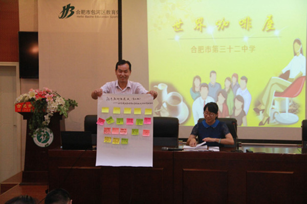 “世界咖啡屋”是指圍繞一個相關(guān)問題有意圖地建造一個實(shí)時的會議,通過將大家的思維和智慧集中起來解決問題、發(fā)現(xiàn)思考的共性的過程??梢哉f,咖啡屋會議是一個創(chuàng)造的過程,它引導(dǎo)協(xié)作對話、分享知識并創(chuàng)造行動的可能性。今天,32中的教研組長、班主任以及中層干部一起走進(jìn)了“世界咖啡屋”。學(xué)校教研室針對此次活動精心設(shè)計了兩個主題,即“特色教研組的建設(shè)”與“責(zé)任課堂的建設(shè)”,十個小組的組長也精心設(shè)計了各小組討論的議題。