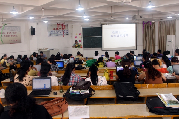 8月30日,淮南十一中組織全體教師在西階梯教室舉行暑期培訓(xùn)論壇。幾位參加第四屆“中語杯”全國中青年教師課堂教學(xué)觀摩研討會(huì)的教師向全校教師做了交流發(fā)言,和大家分享了在新課標(biāo)精神引領(lǐng)下實(shí)現(xiàn)課堂目標(biāo)與教學(xué)過程有機(jī)統(tǒng)一的實(shí)踐成果,就提升課堂教學(xué)品質(zhì)、教師專業(yè)成長中的熱點(diǎn)問題進(jìn)行了熱烈的交流研討。之后,湯本峰老師帶領(lǐng)教師學(xué)習(xí)了多媒體常規(guī)應(yīng)用技術(shù),大大提升了教師在課堂教學(xué)中對(duì)班班通的熟悉程度,也進(jìn)一步為提高課堂效率、打造高效課堂提供了技術(shù)條件。