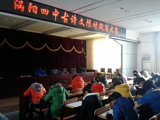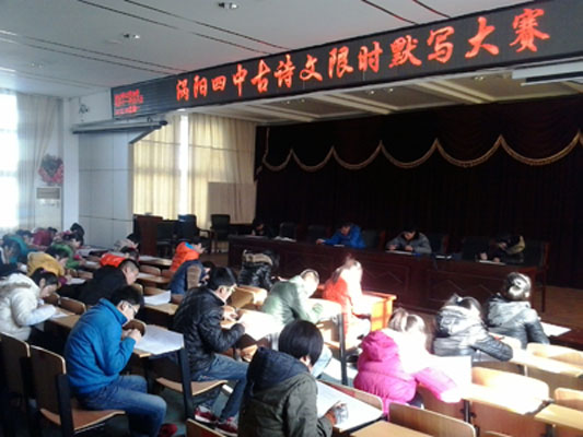 12月30日,我校高二年級“古詩文默寫大賽”(決賽)在科教樓六樓會議室舉行。經(jīng)過預賽選拔,一百三十多位選手從高二年級一千六百多名學生中脫穎而出,參加了此次比賽。比賽旨在培養(yǎng)學生誦讀中華優(yōu)秀詩文的興趣,開闊視野,活躍我校文化生活。經(jīng)過緊張激烈的角逐,其中理1班武相龍、理3班孫娟、理4宋晨露等同學分別獲得一、二、三等獎。