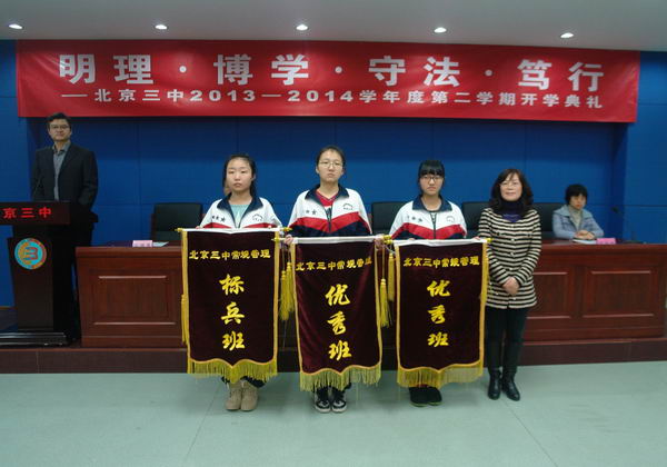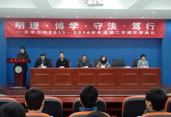北京三中2013-2014學年度第二學期開學典禮于2月17日早八點在六層多功能廳準時召開。本次典禮以“明