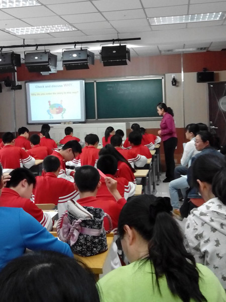 課后,教研員和全區(qū)初二英語教師進行了熱烈的討論,一致認為課堂主線清晰,實施連貫、自然,教師引導得當,許多亮點值得借鑒。區(qū)教研員景鵬老師認為,此課教學設計具有創(chuàng)新感,又很扎實,課堂體現(xiàn)了對學生的關注和對學生思維能力的培養(yǎng),提高了課堂有效性。
