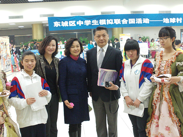 宏志中學鄭思陽同學作為聯(lián)合國大會第三委員會主席圓滿的組織了“消除對女性的歧視”會議,三個小時的激烈討論和辯論得到了參與學校學生們的好評。宏志中學學生們以雄辯的口才、團結(jié)的合作以及融洽的交際,獲得“最佳組織獎”“十佳地球村獎”“最佳團隊獎”三項集體獎,教委領導王夢娜對于我校學生自己拼裝的法國埃菲爾鐵塔和凱旋門等立體圖形大加贊揚并與學生合影留念。