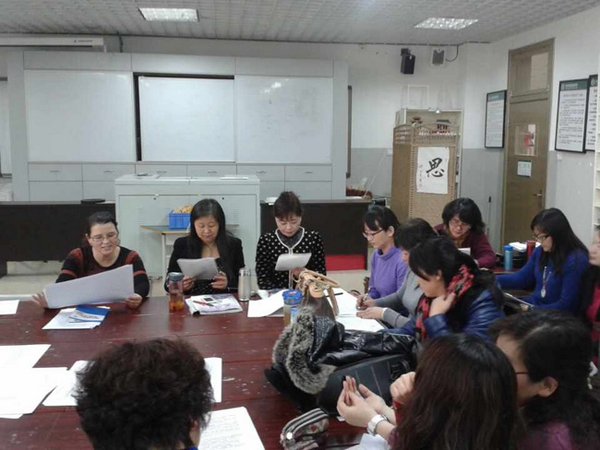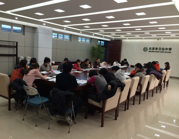 在本次“學科建設”會上,日壇中學四個校區(qū)的學科教師齊聚一堂,按學科教研組,分成十一個分會場,各學科組圍繞學校課堂教學“五三標準”全員討論、制定出符合“五三標準”基本要求的學科課堂教學評價量表,并討論制定出本學期的學科建設工作計劃。比如英語學科教研組由教研組長葉平主持,活動過程中,老師們結合英語學科的課程標準評價,并依據(jù)學校提出的“五三”要求,討論、細化符合英語學科的課堂教學評價量表。學科組的特級教師、市區(qū)級骨干教師、35歲以下青年教師積極響應學校號召,紛紛表示要積極準備并且在全校做校級公開課。物理學科教研組在教研組長梁志鵬老師的主持下,所有物理組教師展開了充分的研討。對本學科“課堂教學評價量表”進行了細化和具體化;對本學期后四次學科建設活動進行了布置,落實到每一個備課組;上報青年教師和骨干教師公開課時間和具體內容;著手建設日壇中學物理資源庫,具體到每個備課組的負責人及上報框架時間;確定每位教師進行“微課”錄制。過程中穿插了學科教研組集體照的拍攝,大家思維活躍,參與度高,在非常好的研討氛圍中對每項內容都進行了細致的落實,每一位參與的教師都有很大的收獲。中小學體育教師則匯聚在永安里校區(qū)五層報告廳“教職工之家”,來應紅組長帶領體育教師重點研討四個議題:(1)體育學科課堂教學評價量(2)體育學科資源庫“架構”(3)體育“十二五”第二批規(guī)劃課題申報(4)本學期體育學科建設的具體內容。整個研討過程老師們獻計獻策,初步確定了評價量表的細化方案、課題申報、資源庫建設及后續(xù)學科建設的提議,并做出了明確的計劃。