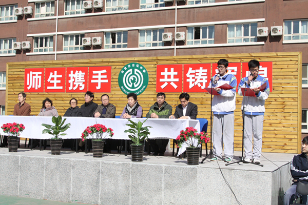 2月6日,日壇中學(xué)召開(kāi)了主題為“師生攜手,共鑄輝煌”2014屆高考百日誓師大會(huì)。此次誓師大會(huì)趙欣校長(zhǎng)、學(xué)校相關(guān)領(lǐng)導(dǎo)、初、高三年級(jí)全體師生參加。
