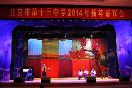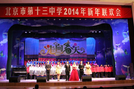 伴隨著金蛇狂舞的民樂齊奏,北京市第十三中學2014年“走向春天”新年聯歡會拉開了序幕。在春的期冀中馬景林校長激情致辭,他對同學們的期望是:完善自我,幫助他人;丟掉牢騷,從我做起,開始實踐;堅持真理、獨立思考、勿丟良知。愿所有十三中人帶著希望,走向春天!