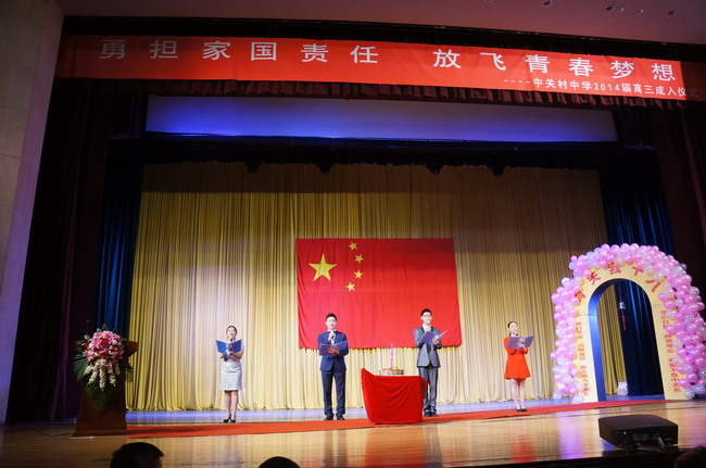 本次活動(dòng)的主題是勇?lián)覈?guó)責(zé)任,放飛青春夢(mèng)想,活動(dòng)目的是讓學(xué)生體味感恩與責(zé)任,為成人后的第一件事——高考,加油!