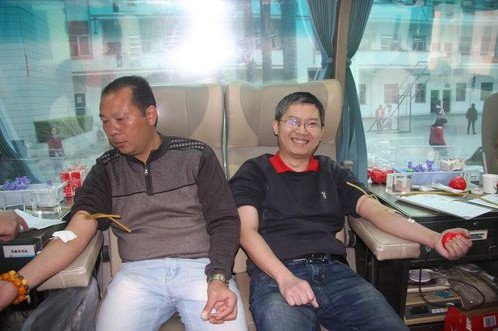 湯建榮老師的病情經(jīng)新聞報(bào)道后,學(xué)校對(duì)此非常重視,在進(jìn)行了專門討論后并在全校師生大會(huì)上宣讀為抗戰(zhàn)老兵、退休教師湯健榮進(jìn)行義務(wù)獻(xiàn)血的號(hào)召??紤]到學(xué)生年齡較小(我國規(guī)定年滿18周歲以上才能進(jìn)行義務(wù)獻(xiàn)血),因此主要針對(duì)學(xué)校教職員工發(fā)出獻(xiàn)血倡議,并聯(lián)系百色市中心血站進(jìn)行入校采血事宜。采血當(dāng)天,有超過40名教職工來到現(xiàn)場準(zhǔn)備獻(xiàn)血,但有一半左右因?yàn)樯眢w原因不符合獻(xiàn)血條件,最后只有20名教職工成功獻(xiàn)血,總獻(xiàn)血量達(dá)7800ml,為湯建榮老師及時(shí)提供了援助。據(jù)悉,此次我校教職工為湯老師所獻(xiàn)出的血,至少可以為他維持半年以上的生命。