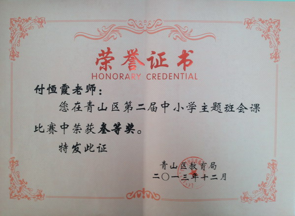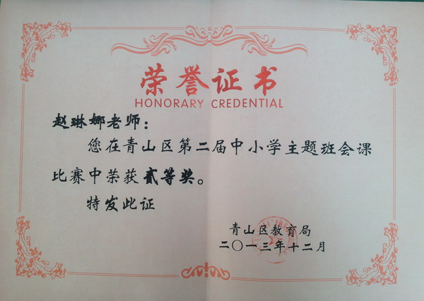 2013年12月舉辦的青山區(qū)第二屆中小學主題班會課比賽現(xiàn)已圓滿結束,我校參賽教師在比賽中取得了優(yōu)異成績。趙琳娜老師和付恒霞老師在比賽中分別獲得二、三等獎。讓我們對她們取得的成績表示衷心的祝賀!