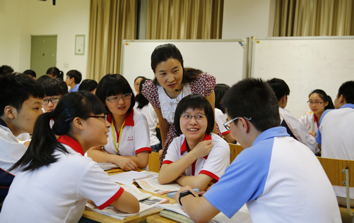 如今,走進(jìn)新都一中的教室,你會(huì)發(fā)現(xiàn),傳統(tǒng)課堂“走樣了”——“排排坐”的課桌變成了“團(tuán)團(tuán)坐”,學(xué)生們面對(duì)面地小組抱團(tuán)學(xué)習(xí),針對(duì)某個(gè)知識(shí)點(diǎn)或題目進(jìn)行探討交流、碰撞交鋒;一節(jié)課下來,老師只講10多分鐘,學(xué)生成了講臺(tái)的主角……