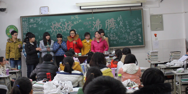 有的班級為了更好地利用好100天,例如12班,在學(xué)生合作學(xué)習(xí)共同體基礎(chǔ)上根據(jù)備考需要還自主組建了幫扶小組,統(tǒng)一口號,甚至確定了勵(lì)志歌曲為組歌,每個(gè)學(xué)生有自己的備考誓言?!皯?zhàn)勝惰性、積極行動(dòng),努力決定實(shí)力、心態(tài)決定命運(yùn)”,高2014級14班全體學(xué)生用一聲聲鏗鏘有力的誓言彰顯他們樸實(shí)的追求和堅(jiān)定的決心。