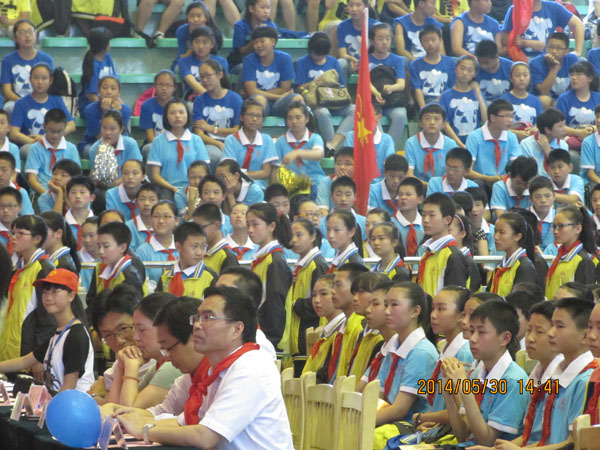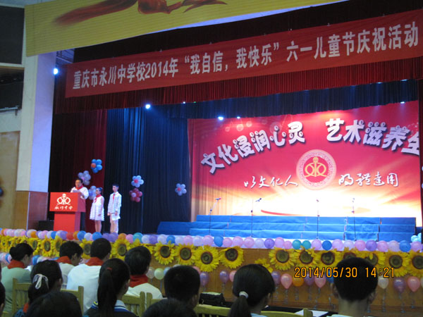 永川中學(xué)初2016級(jí)1300余名同學(xué)于5月30日下午在老校區(qū)體育館,以鏗鏘優(yōu)美的歌聲——年級(jí)歌詠比賽,慶?!傲弧眱和?jié)。學(xué)校各領(lǐng)導(dǎo)參加了慶?;顒?dòng)并與孩子們一起度過(guò)了快樂(lè)的節(jié)日。
