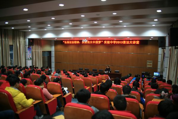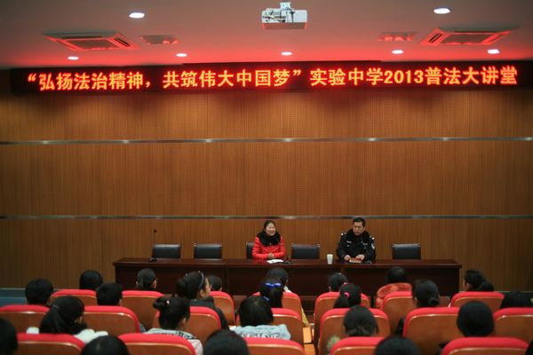 在2013年“12.4“全國法制教育日系列活動中,12月13日下午學(xué)校邀請理論水平較高、執(zhí)法經(jīng)驗豐富的兩名公安干警以在學(xué)生身邊的行為,引用法律條文,列舉典型案例給學(xué)生上了一堂生動的法制教育課。