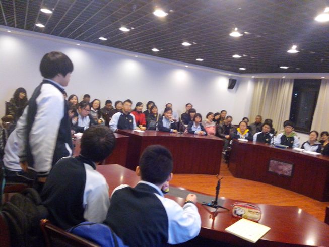 11月22日晚,高一(4)班在14樓辯論室召開了一次別開生面的家長會。家長走進會場看到了同學給自己寫下的“真情表白”便簽,拉近了學生和家長的情感距離。同學和家長們又一起欣賞了一段記錄學生軍訓、運動會開幕式表演及其它活動的視頻,氣氛漸漸活躍起來。接下來家長觀摩了同學們精心準備的辯論會,他們圍繞“尊人與尊己”進行了辯論,家長同學生還就做為學生怎樣做到尊敬師長進行對話,寓教于樂。最后,班主任胡琛老師介紹了學生進入高一以來的學習、活動和生活情況,并解讀了十八屆三中全會有關教育改革方面的舉措和精神。取得了預期目的。