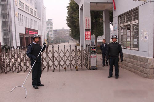 實行門衛(wèi)二十四小時無縫式管理。學(xué)校把門口值班值守作為第一道安全防線,要求門衛(wèi)全天二十四小時無縫對接,并嚴(yán)格要求門衛(wèi)值班人員嚴(yán)把入校關(guān),所有來訪人員必須經(jīng)過被訪者電話確認并登記后方可進入校園。