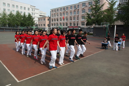 初一年級學(xué)生利用體育課時間,進(jìn)行了課間操評比展示活動。學(xué)生們服裝整齊、昂首闊步、隊(duì)列整齊地走進(jìn)比賽場地。伴隨著音樂聲的想起,學(xué)生動作舒展大方且規(guī)范,節(jié)奏準(zhǔn)確,展現(xiàn)了自己良好的精神面貌。