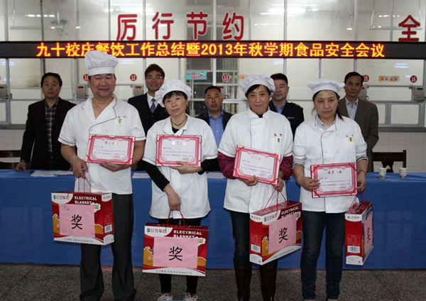 10月23日晚7點(diǎn),總務(wù)處在勤業(yè)樓一樓食堂隆重召開(kāi)了校慶期間餐飲服務(wù)總結(jié)表彰暨秋學(xué)期食品安全衛(wèi)生工作會(huì)議。會(huì)議由范順忠主任主持,楊明校長(zhǎng)和吳柏勝主任分別作了重要的講話,縣衛(wèi)生監(jiān)督所張動(dòng)方主任就食品衛(wèi)生安全給食堂全體從業(yè)人員上了生動(dòng)的一課。會(huì)議最后對(duì)各食堂和事務(wù)處人員在本次校慶活動(dòng)中表現(xiàn)突出的人員進(jìn)行了表彰,并為獲獎(jiǎng)人員頒發(fā)了榮譽(yù)證書(shū)和獎(jiǎng)品。