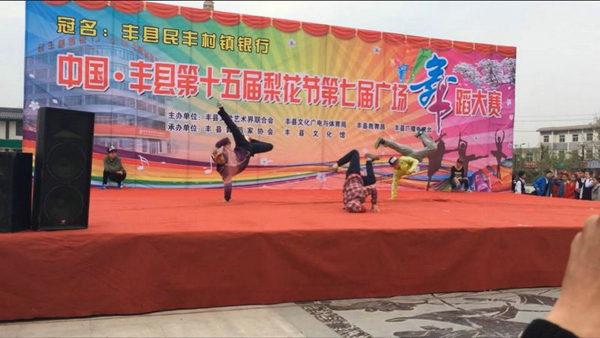 4月7日,由豐縣文聯(lián)、文廣體局、教育局、電視臺聯(lián)合主辦,由舞蹈協(xié)會、文化館承辦的中國?豐縣第十五屆梨花節(jié)“民豐村鎮(zhèn)銀行杯”暨豐縣第七屆廣場舞大賽在劉邦廣場隆重舉行。整場大賽歷時(shí)4個(gè)小時(shí),經(jīng)過激烈的角逐,我校代表隊(duì)李超偉等五位同學(xué)呈現(xiàn)的街舞博得觀眾和評委的陣陣掌聲,最后獲得了銅獎(jiǎng)。