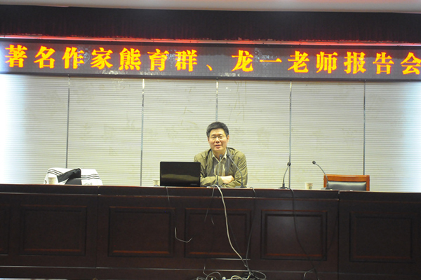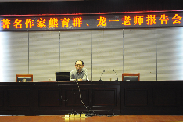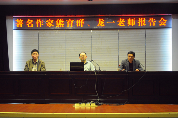 4月11日晚,著名作家熊育群,龍一老師來到豐縣中學,為學生作報告。