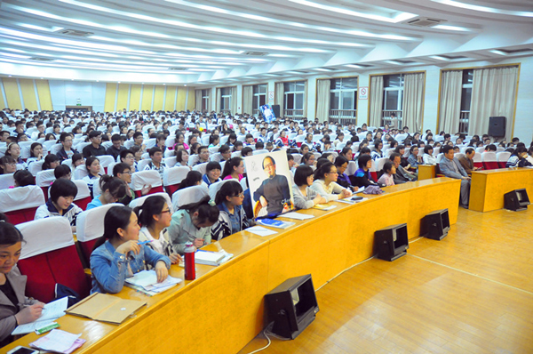 熊育群老師報告的主題是怎樣寫作。熊老師主要講了兩個方面的內容:傾聽內心的聲音,學會觀察。他用自己由理工科學生轉變到職業(yè)作家的經歷和攀登珠峰的感受貫穿整個報告,讓師生明白“文學是很快樂的事情”。