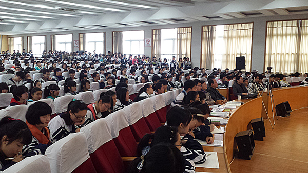 4月12日上午,著名作家鮑爾吉·原野來校,為高二師生作了一場別開生面的報告。