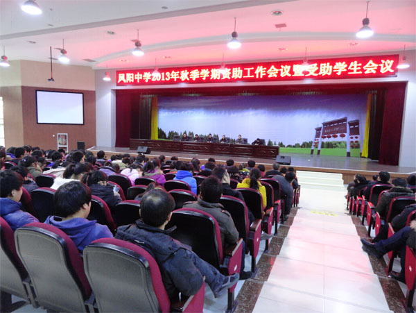 2013年12月30日下午,鳳陽(yáng)中學(xué)2013年秋季學(xué)期資助工作會(huì)議暨受助學(xué)生會(huì)議在學(xué)校大禮堂隆重舉行。出席此次會(huì)議的有張立陽(yáng)校長(zhǎng),王付海副校長(zhǎng),學(xué)生資助中心主任姚友漢,各年級(jí)主任,全體班主任以及全體受國(guó)家資助學(xué)生。會(huì)議由王付海副校長(zhǎng)主持。