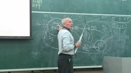 Alexander先生從世界規(guī)則、起點(diǎn)標(biāo)圖技術(shù)、路線選擇、體能分配等方面講授測向知識,語言風(fēng)趣生動,內(nèi)容深刻實(shí)用,引來同學(xué)們一陣陣的掌聲。一個(gè)小時(shí)的課程很快結(jié)束,Alexander嚴(yán)謹(jǐn)?shù)淖黠L(fēng),生命不息運(yùn)動不止的精神(68歲的他已堅(jiān)持測向運(yùn)動48年),良好的職業(yè)素養(yǎng)(為了堅(jiān)持測向運(yùn)動,煙酒不沾),精湛的技術(shù)(個(gè)人9項(xiàng)世界冠軍,學(xué)生5人問鼎世錦賽)等深深感染了同學(xué)們,讓同學(xué)們肅然起敬。最后Alexander誠邀我校師生9月份前往哈薩克斯坦參加第十七屆世界無線電測向錦標(biāo)賽并預(yù)祝我校取得好成績。