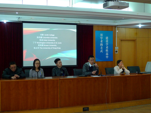 出席本次講座的校友所就讀(或已被錄取)的學校包括:布朗大學、華盛頓大學圣路易斯分校、史密斯學院、埃默里大學、北卡羅來納州大學教堂山分校、香港大學、哥倫比亞大學、杜克大學。