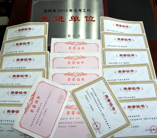 11月1日,在深圳市2013年高考工作總結(jié)暨2014年高考備考工作會(huì)上傳來(lái)喜訊,我校繼去年榮獲“深圳市2012年高考工作卓越獎(jiǎng)”后,今年又以?xún)?yōu)異的成績(jī),再次榮膺“深圳市2013年高考工作卓越獎(jiǎng)”,吳川、廖燕芳、張紅兵、王海莉、王文超、吳利莎等6人被授予“深圳市2013年高考工作先進(jìn)個(gè)人”稱(chēng)號(hào),鄭方興、羅體運(yùn)、陳青、陳秋梅、鄭維群、鄧卉、李文清、葉歆、吳云、肖件文、劉元芳、龔麗琴、陳紅煒等13人被授予“深圳市2013年高考工作學(xué)科先進(jìn)個(gè)人”稱(chēng)號(hào)。