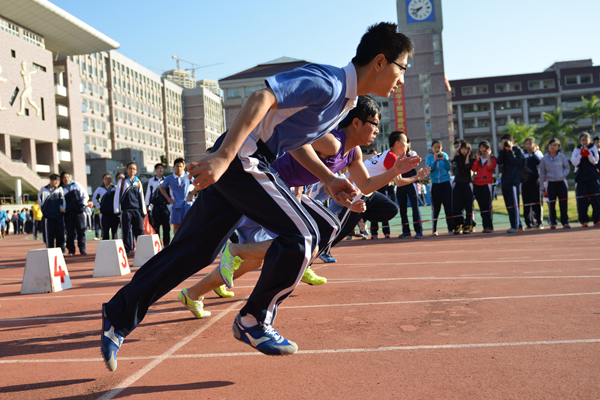 高級中學(xué)2013年體育節(jié)從11月11日開始,至29日結(jié)束,為期將近20天。本次體育節(jié)除田徑運動會開幕式外,其他活動按初高中分組進行。學(xué)校根據(jù)不同學(xué)段,設(shè)計了豐富多彩的活動。其中初中組有仰臥起坐、拔河、足球、半場投籃、20人21足競走、教師與學(xué)生籃球賽、教師與學(xué)生足球賽,以及田徑賽等項目;高中組有拔河、踢毽子、籃球、綁腿跑、迎面接力以及田徑賽等項目。