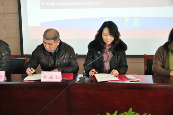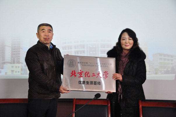 首先,北京化工大學(xué)副校長(zhǎng)李顯揚(yáng)、招生辦主任趙靜分別從學(xué)科設(shè)置、人才培養(yǎng)、科研水平、校園生活、文化建設(shè)等方面向?qū)W生全面介紹了北京化工大學(xué)的基本情況。接著,張潤(rùn)娥副校長(zhǎng)代表學(xué)校與李顯揚(yáng)副校長(zhǎng)簽署人才輸送協(xié)議書并接過優(yōu)秀生源基地牌。