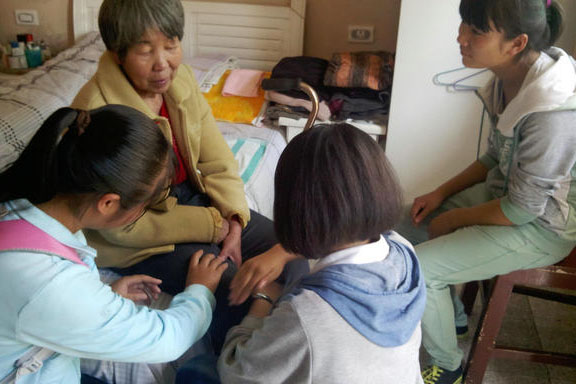 在這過程中,我們感悟了很多,這些老人,有的是沒兒女,沒有老伴的,人們不都常說,老年的時候是應該享清福的,可總有那么一些人,在晚年時,沒有親人的陪伴,孤身一人,想想我們真的很幸福,有父母,親人關心我們,而這些老人,沒有可以依靠的人,心里會變得空虛吧。我們能做到的就只有陪他們聊天,唱歌給他們聽,雖然微不足道,但希望可以為他們的帶來快樂,希望他們用微笑面對每一天,開開心心的度過剩下的時光。