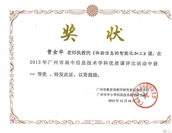 2013年12月20日,曹金華老師在廣州市信息技術(shù)高中教研活動中做了本次優(yōu)質(zhì)課的設(shè)計思路、心理歷程的發(fā)言,在會上,曹老師簡要的分享了參與本次優(yōu)質(zhì)課的一些做法和經(jīng)驗。