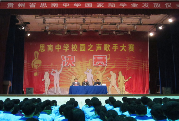 2013年12月11日下午課外活動(dòng)時(shí)間,在學(xué)校體育館召開(kāi)了2013年秋季學(xué)期國(guó)家助學(xué)金發(fā)放儀式。會(huì)議由袁萬(wàn)強(qiáng)副主任主持,德育副校長(zhǎng)郝銀昌同志和政教處副主任陳康同志講話。