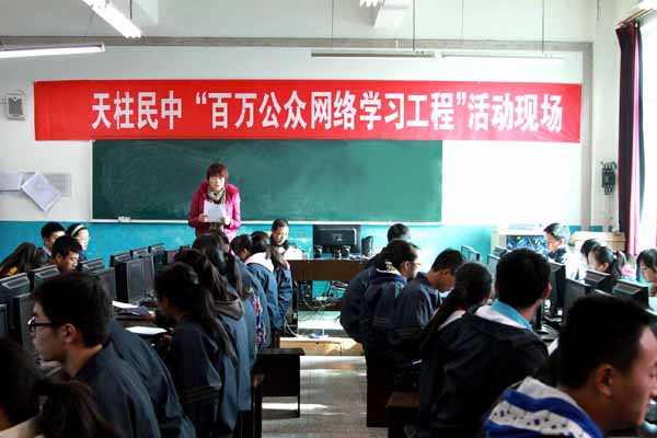 根據(jù)天全科組辦通【2013】1號《關(guān)于印發(fā)<2013年天柱縣“百萬公眾網(wǎng)絡(luò)學習工程”活動實施方案>的通知》的要求,為有效提升全校師生的理論素養(yǎng),加強干部職工特別是領(lǐng)導干部的發(fā)展能力,進一步凝聚人心、智慧和力量,天柱民族中學積極響應(yīng)“天柱縣百萬公眾網(wǎng)絡(luò)學習工程”活動號召,認真抓落實。