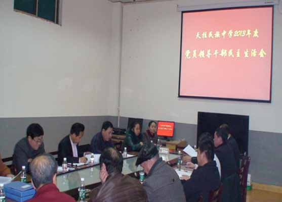 根據(jù)縣紀委、縣委組織部文件(天組通2013〔127〕號)的要求和部署,緊緊圍繞保持黨的先進性和純潔性,按照“照鏡子、正衣冠、洗洗澡、治治病”的總體要求,以“為民務(wù)實清廉”為主題,以“反對‘四風(fēng)’、服務(wù)群眾、踐行‘三實三同’”為重點,以落實“四先一籌備”工作為抓手,堅持嚴肅認真、實事求是、民主團結(jié)的原則,經(jīng)學(xué)校黨委的認真籌備安排,學(xué)校領(lǐng)導(dǎo)班子于2013年12月5日下午召開了的一次高質(zhì)量的領(lǐng)導(dǎo)干部民主生活會。參會人員有校級班子成員、中層正職行政干部、離退休教師代表和縣人大、政協(xié)委員代表共17人,縣級黨員領(lǐng)導(dǎo)干部縣人大主任姚學(xué)銀同志、縣紀委副書記龍云輝同志、縣委組織部副部長、人事局局長戈成星同志到會指導(dǎo)。
