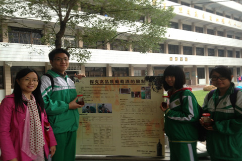 我校高二級(jí)馮穎、卓家銘、張穎捷、龍茵怡、梁瑞鍵等五位同學(xué)在生物科周儒倬老師和劉思恩老師的帶領(lǐng)下參加了本次比賽。本次活動(dòng)從前期準(zhǔn)備、初賽評(píng)選到復(fù)賽現(xiàn)場(chǎng)評(píng)比耗時(shí)近一個(gè)學(xué)期。同學(xué)們?cè)趦晌焕蠋煹闹笇?dǎo)下,對(duì)葡萄酒的色澤、口感、香氣等方面進(jìn)行了深入地研究,經(jīng)過一次又一次的試驗(yàn),最終釀制出了具有我們自己特色的葡萄酒。經(jīng)過現(xiàn)場(chǎng)評(píng)委和其他參賽兄弟學(xué)校師生的品嘗和評(píng)分,最終我們學(xué)校的葡萄酒從一百多所學(xué)校中脫穎而出,榮獲比賽的二等獎(jiǎng)。