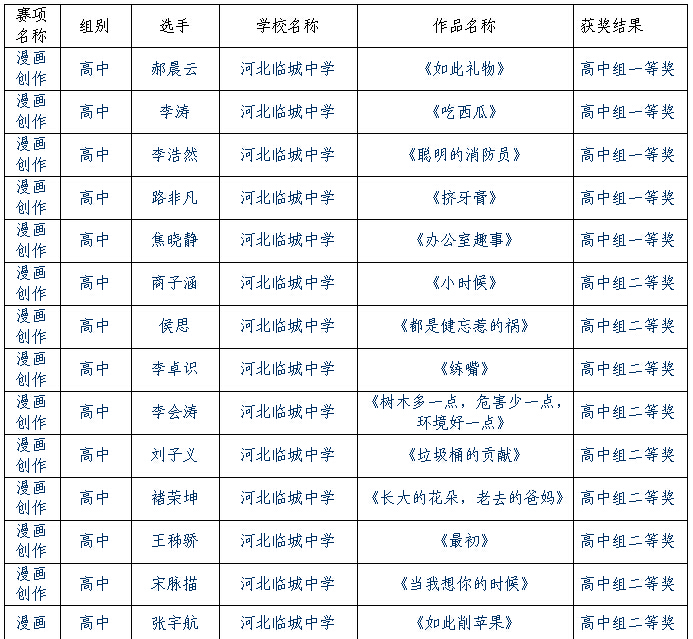 附:第五屆河北省中小學(xué)信息技術(shù)創(chuàng)新與實踐活動——漫畫創(chuàng)作我校獲獎學(xué)生名單