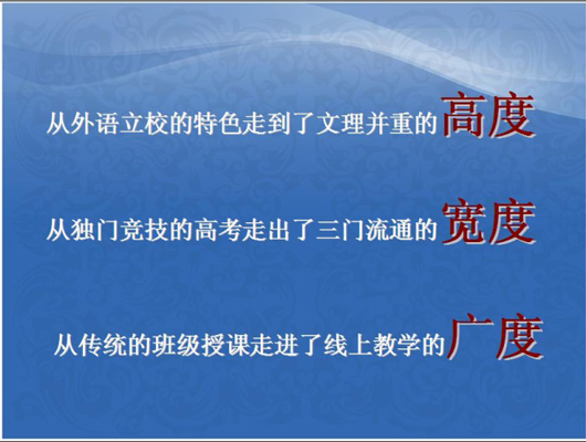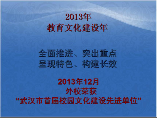 李校長以理念引領(lǐng)、制度創(chuàng)新、行為提升、課程建設(shè)、環(huán)境優(yōu)化五個部分來分享我們2013年的收獲;鼓勵全體教職員工在新的一年中,繼續(xù)以持續(xù)學(xué)習(xí)的才氣、求真務(wù)實(shí)的底氣、攻堅克難的勇氣、為民奮進(jìn)的銳氣,帶領(lǐng)全體外校人去實(shí)現(xiàn)我們的夢想。