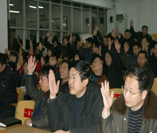會議由劉軍喜校長主持,主要有五項(xiàng)議程:宣布黨總支機(jī)構(gòu)建制和各支部相應(yīng)調(diào)整情況;討論預(yù)備黨員張建輝、王婷娜同志如期轉(zhuǎn)正;討論接收入黨重點(diǎn)培養(yǎng)對象王紹志為中共預(yù)備黨員;全體黨員重溫入黨誓詞;趙校長講意見。