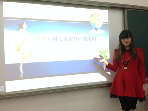 少年情懷總是詩(shī),文字也好,影視也罷,給社會(huì)帶來(lái)的思考和爭(zhēng)論一直無(wú)休無(wú)止。韓寒,郭敬明,一代青年作家,都在用自己的方式詮釋著自己的價(jià)值,也代表了一些在這個(gè)時(shí)代里用文字吶喊、用文字換取利益的文學(xué)商人的人生哲學(xué)。“內(nèi)行看門道,外行看熱鬧”相信王欣玉老師這個(gè)“內(nèi)行人”的“門道”講解一定給很多同學(xué)帶來(lái)了更多對(duì)文學(xué)與藝術(shù)的思考。