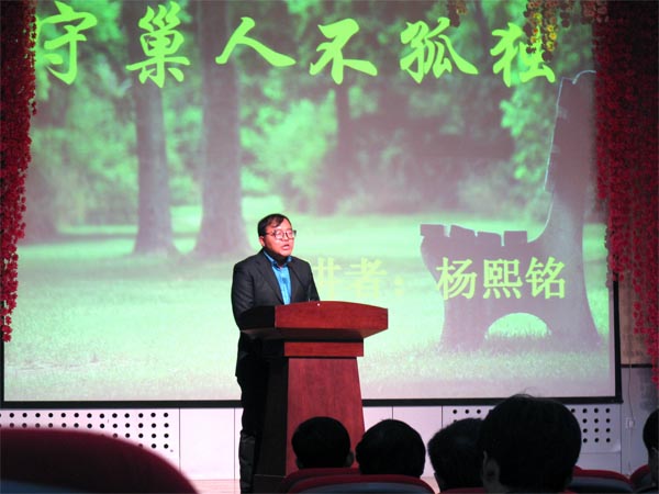 比賽由教科研處李寶義主任主持,33位青年教師參加了比賽,他們從不同角度、不同方面,演繹了我校教師——把愛與責(zé)任貫穿教育始終的師德風(fēng)貌;把信任與希望的陽光播撒給每個(gè)學(xué)生的奉獻(xiàn)精神。他們用自己的熱情和思考,詮釋了怎樣成為一名具有人格魅力的教師,他們借演講比賽這個(gè)平臺(tái),用感人至深的事例和發(fā)人深思的哲理,讓我們感悟著教師的魅力。兩場比賽洋溢著激情和感動(dòng)的氣氛,每一位參賽選手都展示出了我校青年教師陽光、向上、樂觀、大氣的精神風(fēng)貌,展現(xiàn)了自我的個(gè)性風(fēng)采,以青春踐行做有人格魅力教師的職業(yè)理想。臺(tái)下?lián)?dāng)評(píng)委的校領(lǐng)導(dǎo)、教研組長和聽講的高一、高二全體教師也都激情滿懷。每位參賽教師各具特色,難分高下,最后,王欣玉老師的《與愛同行》奪冠,她聲情并茂,言語生動(dòng)優(yōu)美,將演的激情與講的深遠(yuǎn)完美結(jié)合;楊熙銘老師的《守巢人不孤獨(dú)》獲得了第二名,他幽默風(fēng)趣,情理致遠(yuǎn),將大家?guī)У搅怂氖澜缋铮惺苤c學(xué)生的情深、義重;張衛(wèi)明老師的《愛已為己任》奪得第三名,他的聲音渾厚有力,充滿磁性,他對(duì)學(xué)生的愛,在演講中娓娓道來,他對(duì)教師魅力的理解,在演講中至情表達(dá),感染了在場的每一位觀眾。