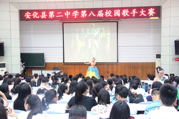 昨晚(6月28日)安化二中第八屆校園歌手大賽決賽在學(xué)校多功能報(bào)告大廳舉行。經(jīng)過初賽海選和兩輪復(fù)賽,有10位選手(組合)進(jìn)入了昨晚的決賽。經(jīng)過緊張激烈的比賽,來自高二年級(jí)的劉娉以一曲高亢嘹亮悠揚(yáng)淳美的《納西篝火啊哩哩》摘得桂冠;來自高二年級(jí)的另一名歌手熊紫薇憑著一曲動(dòng)感十足的英文歌曲《維多利亞的秘密》獲得亞軍;來自高一年級(jí)的周格格則用出色的高音演繹了一首當(dāng)代經(jīng)典美聲歌曲《我愛你,中國》征服了觀眾和評(píng)委獲得季軍。同時(shí),她們還與另外七名歌手黃湘帥、周易、龔玲、方思雨、柏琳和鄧翟蘭、歐陽贈(zèng)雨、王澤禹共同獲得了本屆大賽的“十佳歌手”稱號(hào)。