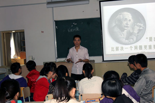 南苑中學吳海江老師代表其學校參加了本次比賽。他的課堂教學氛圍和諧寬松,學生積極思考深入討論,充分體現(xiàn)了以學生為主體的新課程理念。吳老師生動的課堂導入、巧妙的設(shè)問構(gòu)思、風趣幽默的語言,為全體師生展示了一堂真正的“優(yōu)質(zhì)課”,受到了在場教師的一致好評。