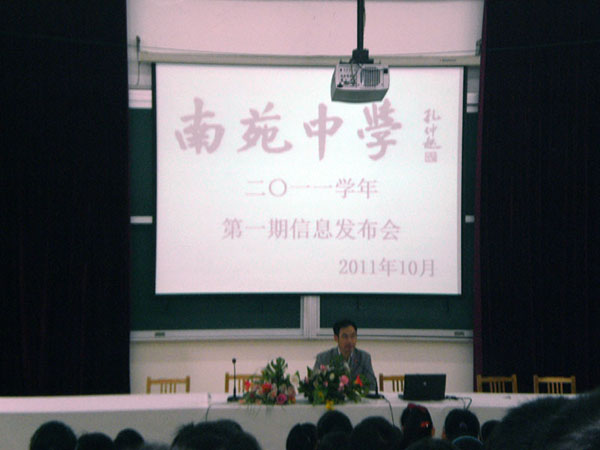 為進(jìn)一步讓學(xué)生了解學(xué)校信息,參與學(xué)校管理,提高學(xué)生的自主管理能力。近日,南苑中學(xué)舉行了2011學(xué)年第一學(xué)期首次信息發(fā)布會(huì)。發(fā)布會(huì)由許逢春校長(zhǎng)主持,全校54個(gè)班級(jí)派代表參加。